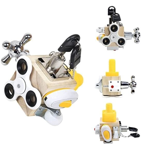 Um dos brinquedos mais intuitivos criado para desenvolver as crianças. O Brinquedo Sensorial Fidget Montessori simula situações do dia a dia. 7 combinações diferentes de objetos estão relacionadas à vida e ensina a criança a aprender habilidades básicas.